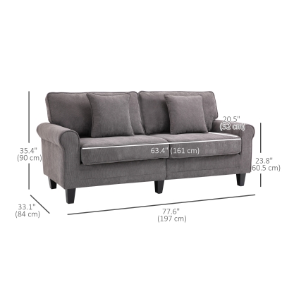 HOMCOM Modern 3 Seater Sofa, Corduroy Fabric 3 Seater Couch with Pine Wood Legs and Rolled Armrests for Living Room, Light Grey