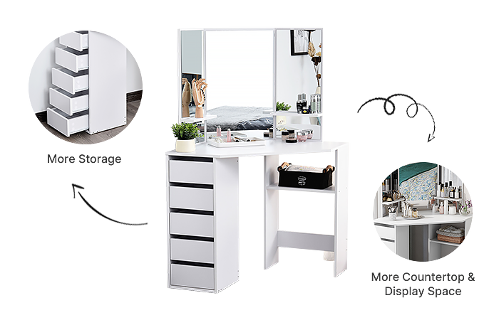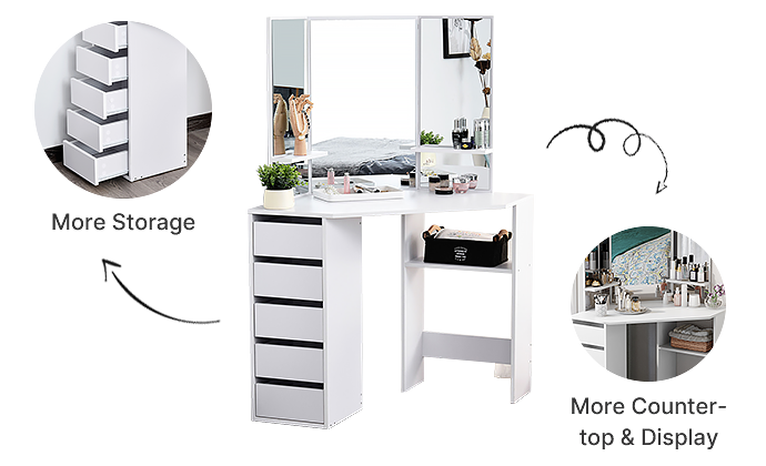 Dressing and Vanity Tables allow you to apply your daily makeup or skin care regimen and make yourself ready the day. With plenty of storage space, your vanity can hold all your most important essentials: makeup, toiletries, medicines, anything you need to keep safe but handy everyday. Plus, they can be used a variety of purposes allowing you to be in your personal sanctuary to work, read, whatever else you need to do in your bedroom everyday. It's only natural that different people have different needs for their bedroom, so we offer a wide variety of desks and organizers - click the links below to see more: