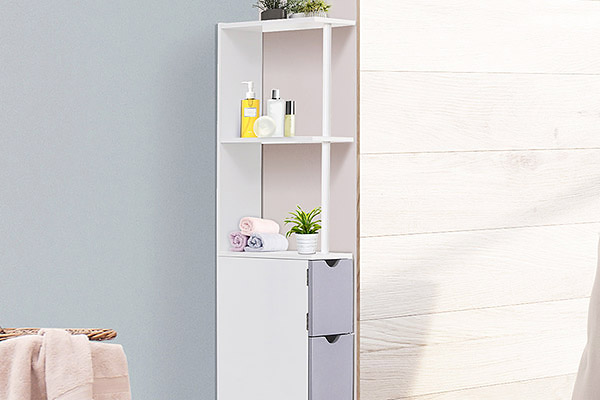 Got a lot of stuff in your bathroom, but not a lot of floor space? This is where our slide-out floor cabinets come in handy! These affordable storage units are narrow enough to fit between many toilets and sinks. (Make sure to double check the space and slide out the dimensions before ordering). Some have locking wheels to make re-organizing and cleaning easier than ever.