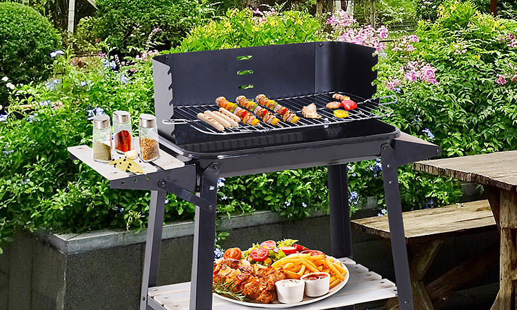 A large table and the right number of chairs will allow everyone to eat comfortably, as well as decorate your outdoor area in style. With outdoor furniture such as a patio umbrella and canopy tent, you can keep everyone out of the sun at all hours of the day.