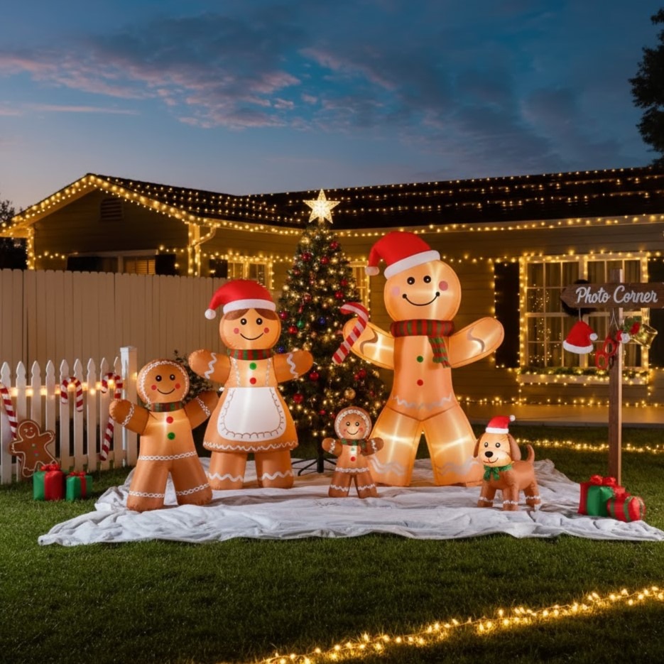 - Visual Depth: Position the sleigh inflatable slightly behind or to one side of the gingerbread figure to create a layered, three-dimensional look.