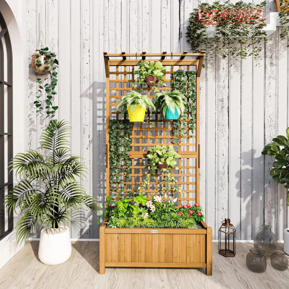 An Outsunny Wood Planter with Trellis for Vine Climbing is perfect for gardeners who want to avoid strain on their knees and back.It holds up to 20 gallons (79L) of soil , this elevated bed allows you to garden in a comfortable standing position.