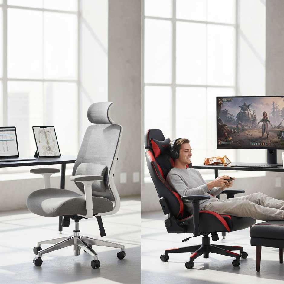 | Primary Purpose | Designed for work, posture, and long productive hours | Designed for gaming, relaxation, and long static sessions |