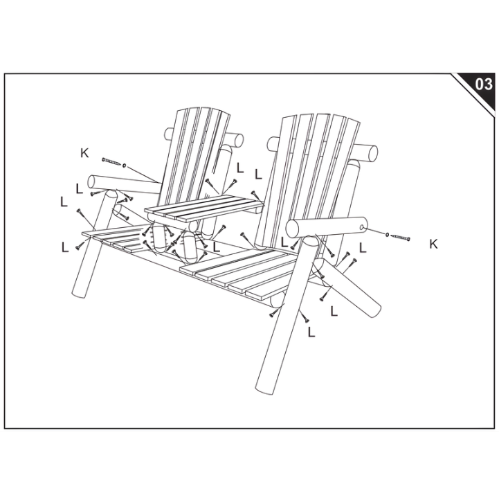 - Continue adding the remaining M4 × 30 Screws (L) along the underside of the bench structure to strengthen all joints and stabilize the frame.