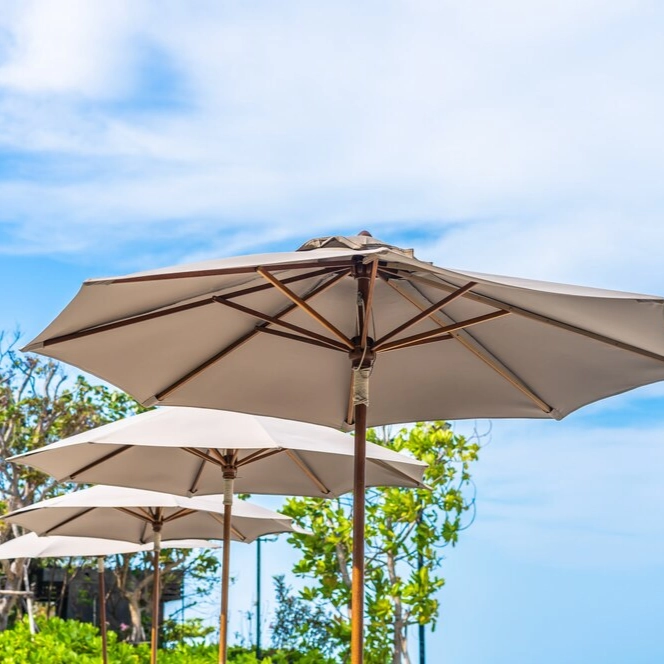 For smaller umbrellas, especially those used in bistro-style settings or compact spaces, push-up umbrellas are a great option. Simply lift the umbrella up to its fully extended height and secure it in place. Push-button mechanisms are also available, which allow for easy tilt adjustments for better shade control.