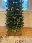 I liked the natural plain look, it covers up the stand nicely and finished the look of the tree, this from someone who's always used a fabric tree skirt. To put together, link 3 pieces then slide it around the tree and add the last panel. Over all very satisfied with this purchase.