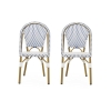 Set of 2 French Bistro Chairs with PE Rattan and Aluminium Frame, Outdoor Chairs with Bamboo Print Finish, 18.5'' L x 21.5'' W x 35'' H, White+Blue