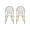 Set of 2 French Bistro Chairs with PE Rattan and Aluminium Frame, Outdoor Chairs with Bamboo Print Finish, 18.5'' L x 21.5'' W x 35'' H, White+Black