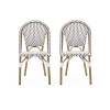 Set of 2 French Bistro Chairs with PE Rattan and Aluminium Frame, Outdoor Chairs with Bamboo Print Finish, 18.5'' L x 21.5'' W x 35'' H, White+Grey