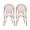 Set of 2 French Bistro Chairs with PE Rattan and Aluminium Frame, Outdoor Chairs with Bamboo Print Finish, 18.5'' L x 21.5'' W x 35'' H, White+Red