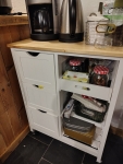 Il y avait un léger accrochage sur une pièce, mais ça n'altère pas la solidité et les fonctions du meuble, en plus ça ne se voit pas, donc c'est OK.
