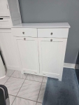 I purchased this cabinet to use in my dog grooming room for supplies. I especially love the depth of the shelves and the handy smaller shelves on the doors. It looks lovely in the room. I didn't want something too high because I wanted my kennel name sign and dog ribbons on the wall above it. It was just perfect! It will help a lot when we have puppies later on this year; everything n will be nicely out of their way.