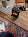 Cute little thing. All electric heaters basically put off the same heat but if you want it for the ambience it's good price compared to others I have seen. Its cute and cozy and fan isn't that loud. The feat were difficult to attache but I got it done.