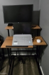 This desk fits nicely in my small room. Having to use a laptop with a second monitor, its perfect to have the laptop tilted on the bottom shelf while the second monitor is on the top. Lets me adjust the height just right for comfort. I would highly recommend this desk if you're in need of a functional workspace without taking up a lot of space.