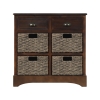 Rustic Storage Cabinet with Two Drawers and Four Rattan Baskets, Modern Farmhouse Style, Acacia Wood Frame, 28" L x 12" W x 28" H, Brown