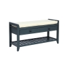 Storage Bench Comfortable Seating, Adjustable Shelves and Removable Cushion for Entryway, 43" L x 16" W x 17.5" H, Antique Navy