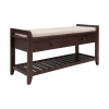 Storage Bench with Multi-Purpose Storage and Adjustable Shelves, Removable Cushion for Entryway, 43" L x 16" W x 17.5" H, Dark Brown
