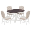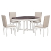 Extendable Dining Table Set with 4 Upholstered Chairs, Stylish Kitchen Table Set with Oak Veneer Top, 54" L x 42" W x 30" H, Off White+Walnut
