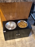 The cabinet was was easy to assemble. Good instructions. The bowls are bigger than expected. Great for large and medium size dogs.