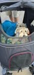 I have an 11 old medium schnauzer, he has some mobility issues so he can't walk more than 30 consecutive minutes. We were looking for a stroller where he fitted and have space to lay out when he is really tired. We found PawHut and we couldn't be happier, he has enough space, and can accommodate really easy.