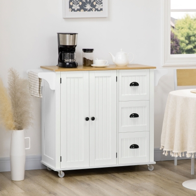 Our HOMCOM kitchen carts add style to your home. They are fashionable pieces that are hard to outdated. You can find a variety of colours, sizes, and finishes that complements your kitchen perfectly.