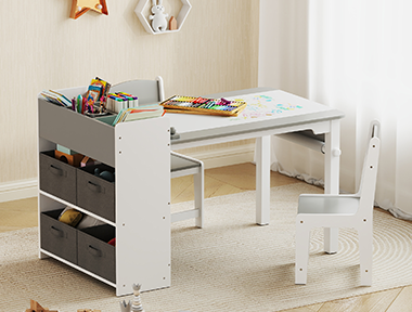 Design a whimsical and functional kids’ room with playful furnishings built for learning and imagination. Fun shelving keeps books and toys organized for easy access. Art easels encourage creativity and developing artistic skills. Plush sofas create a cozy reading nook or space to lounge with friends. Ergonomic desk and chair sets provide proper workspaces for arts, crafts and homework. Vibrant colors and charming decor infuse the space with energy and personality. With furniture tailored for education, play and comfort, this lively kids’ room nurtures young minds while sparking joy.
