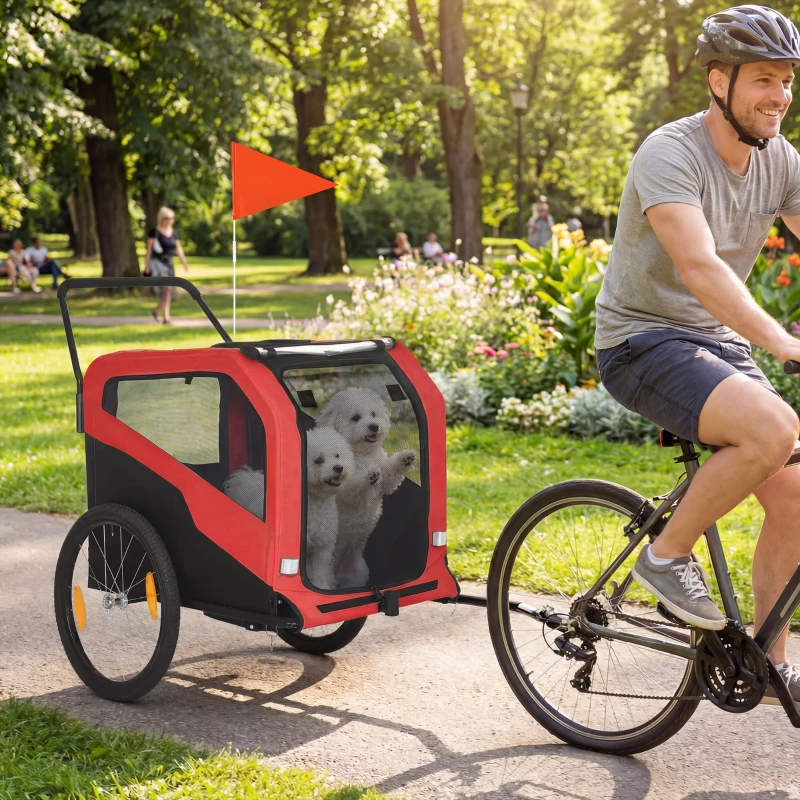Aosom 2-in-1 Dog Bike Trailer for Large Dogs, Red