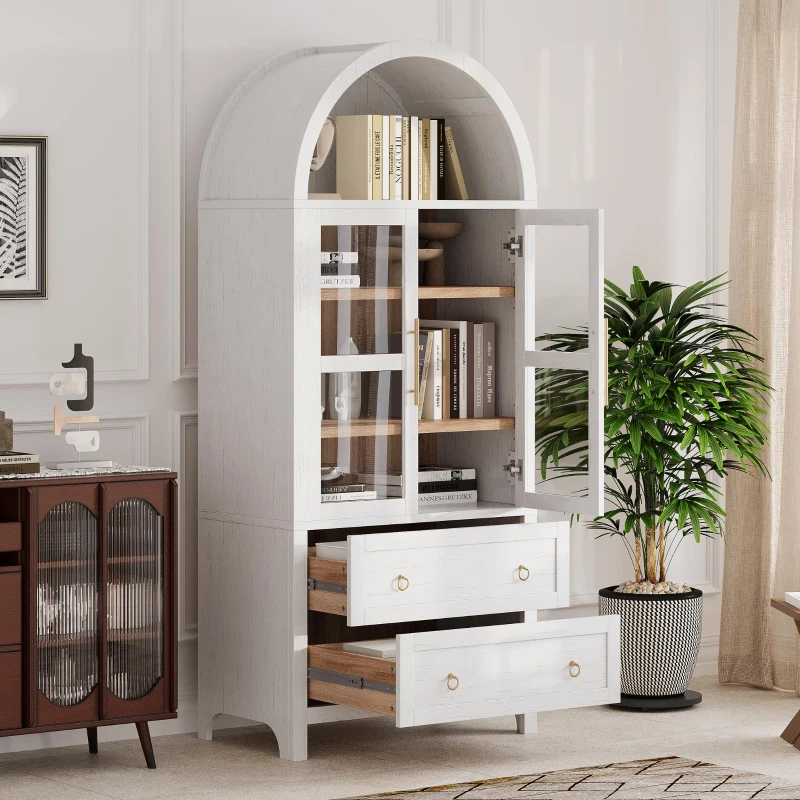 Arched Kitchen Pantry Cabinet with 2 Large Drawers, Stylish Storage Cabinet with Adjustable Shelves, 30'' L x 15.5'' W x 71'' H, White