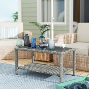 HOMCOM 2 Tier Coffee Table with Storage Shelf, Rectangular Center Table for Living Room, Home Office Furniture Nature Wood