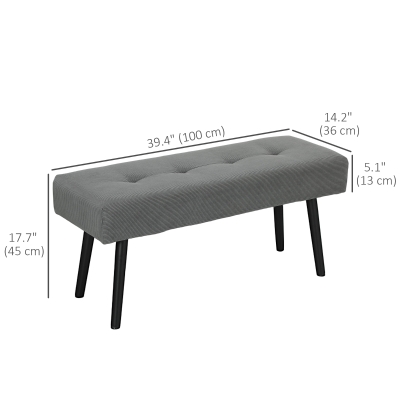 HOMCOM 39" Upholstered Ottoman Bench, Corduroy Entryway Bedroom Bench with Padded Seat and Steel Legs for Bedroom, Grey(m-4)