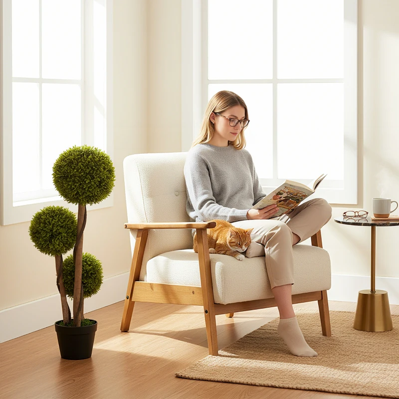 HOMCOM 35 Inch 2 Pack Potted Fake Plant, Artificial Boxwood Topiary Trees, Triple Ball Tree for Indoor and Outdoor, Light Green