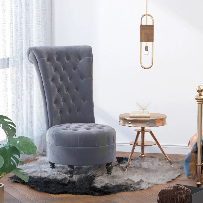 HOMCOM 45" Tufted High Back Velvet Accent Chair Living Room Soft Padded Couch Lounge Ash Grey
