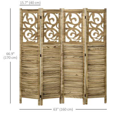 HOMCOM 5.6 Ft Room Divider, 4 Panel Portable Folding Privacy Screens for Home Office, Bedroom, Brown