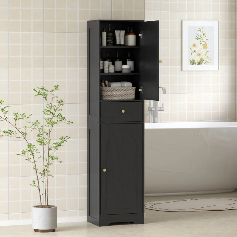 HOMCOM 67" Tall Bathroom Cabinet, Slim Bathroom Storage Cabinet with 2 Doors, Drawer and Adjustable Shelf, Black Wood Grain(m-12)