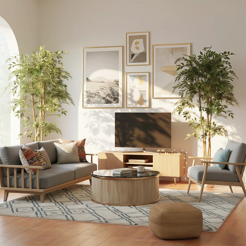 HOMCOM 6FT Artificial Banyan Tree Set of 2, Fake Potted Tree with Solid Wood Trunk and Pot for Indoor