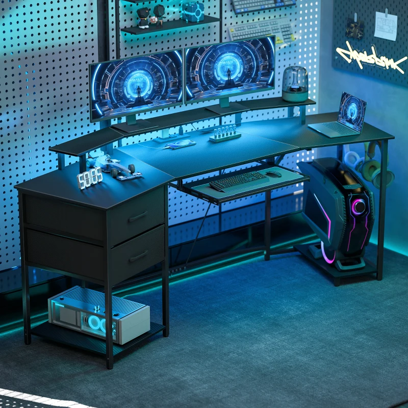 HOMCOM 79 inch Gaming Desk with RGB Lights, Computer Table with Power Outlets & USB Ports, Keyboard Tray and 2 Drawers, Black