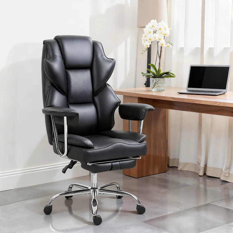 HOMCOM Big and Tall Office Chair, 400 lbs Overstuffed Desk Chair with Shaped Foam, Reclining Backrest, PU Leather