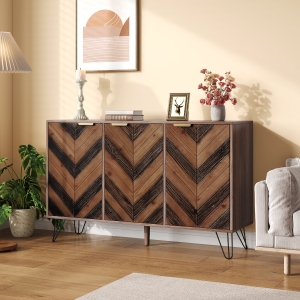 HOMCOM Buffet Cabinet with Storage, Modern Fluted Sideboard with Adjustable Shelves for Dining Room Living Room, Dark Brown