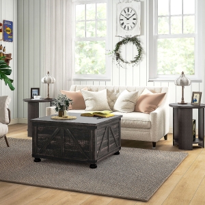 HOMCOM Coffee Table with Lift Top, 32" Farmhouse Center Table with Hidden Compartment for Living Room, Antique White