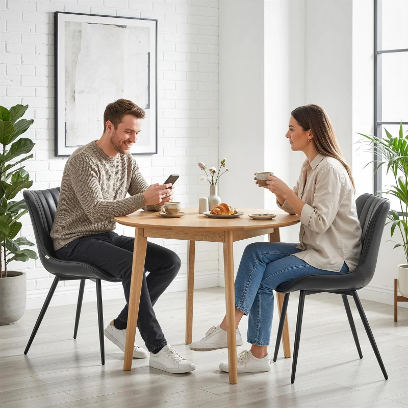 HOMCOM Dining Chairs Set of 2, PU Leather Upholstered Kitchen Chairs with Backrest and Steel Legs, Black