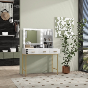 HOMCOM Corner Dressing Table, Makeup Desk with 3-piece Mirror and 5 Drawers, White