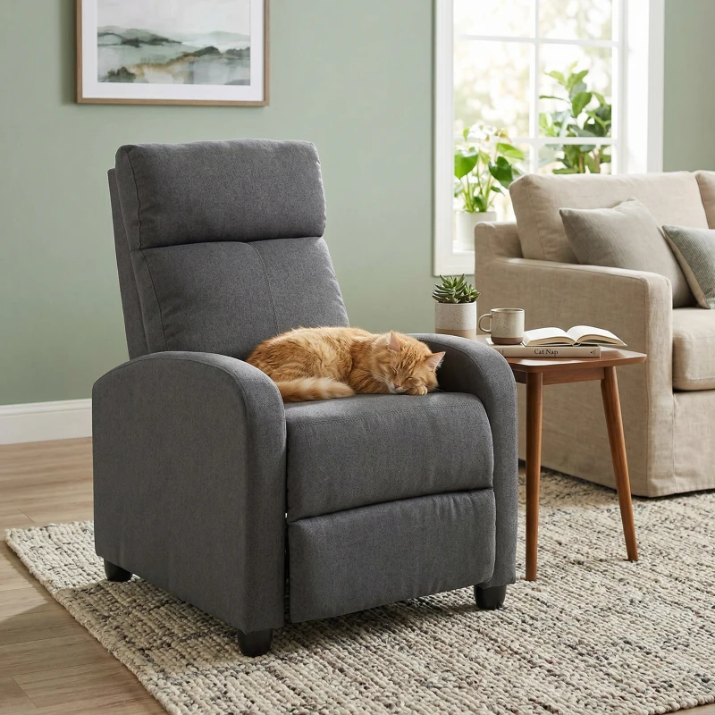 HOMCOM Fabric Recliner Sofa Manual Recliner, Home Theater Seating Single Reclining Sofa Chair with Padded Seat for Living Room, Dark Grey