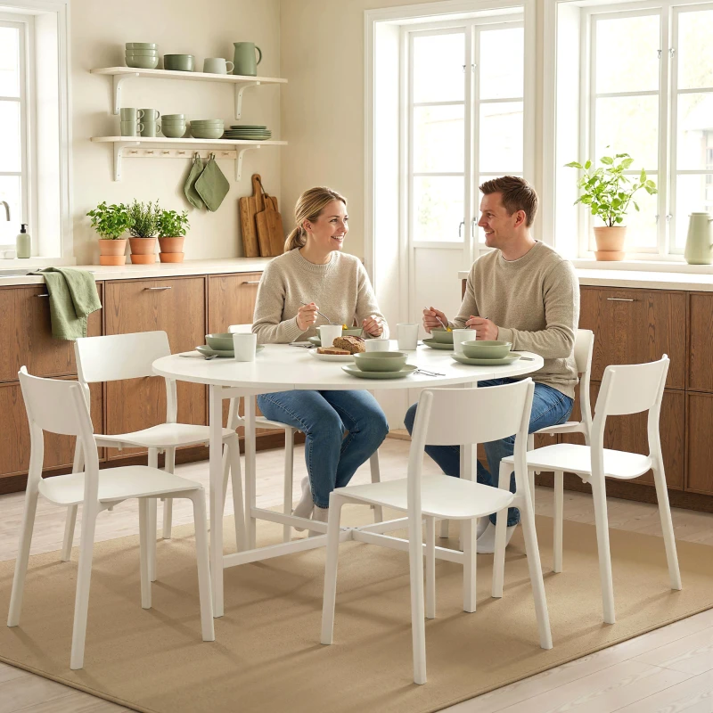 HOMCOM Folding Dining Table for 3-6 People, 47" Round Drop Leaf Kitchen Table with Steel Frame, White