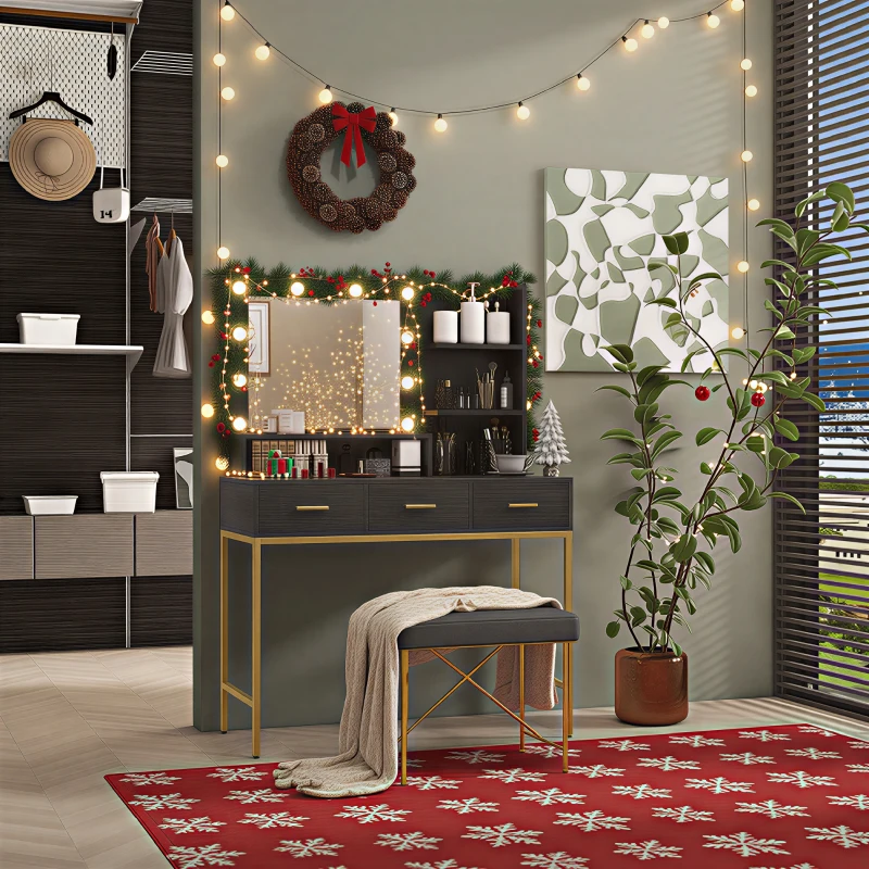 HOMCOM Illuminated Dressing Table, LED Vanity Table with Mirror, 3 Drawers and Storage Shelves for Bedroom, Black