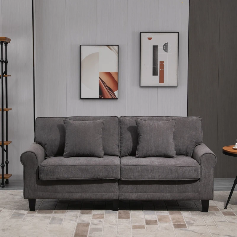 HOMCOM Modern 3 Seater Sofa, Corduroy Fabric 3 Seater Couch with Pine Wood Legs and Rolled Armrests for Living Room, Light Grey