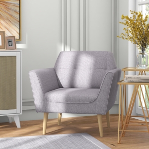 HOMCOM Comfy Accent Chairs with Cushioned Seat, Upholstered Linen-Feel Armchair for Bedroom, Living Room, Blue