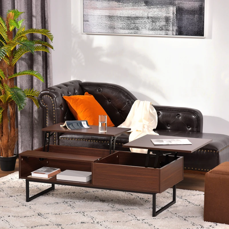 HOMCOM Modern Lift Top Coffee Table with Hidden Storage Compartment and Metal Frame, Center Table for Living Room, Brown