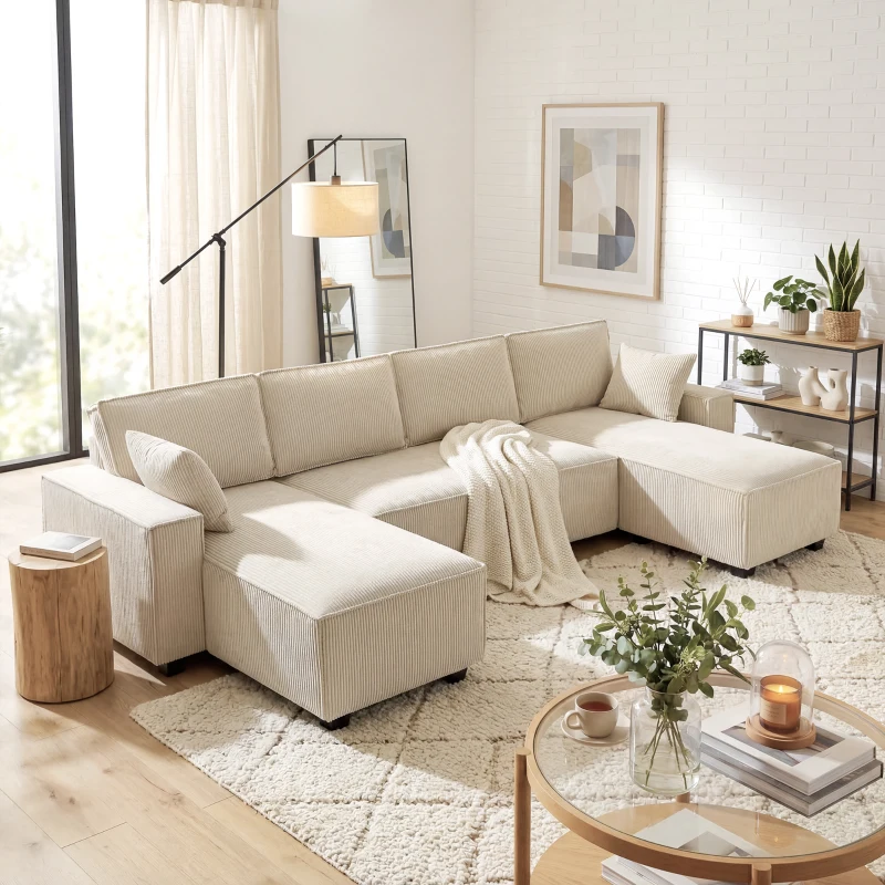 HOMCOM Modular U Shaped Couch, Sectional Sofa with Double Chaises and Spring Cushions, Beige