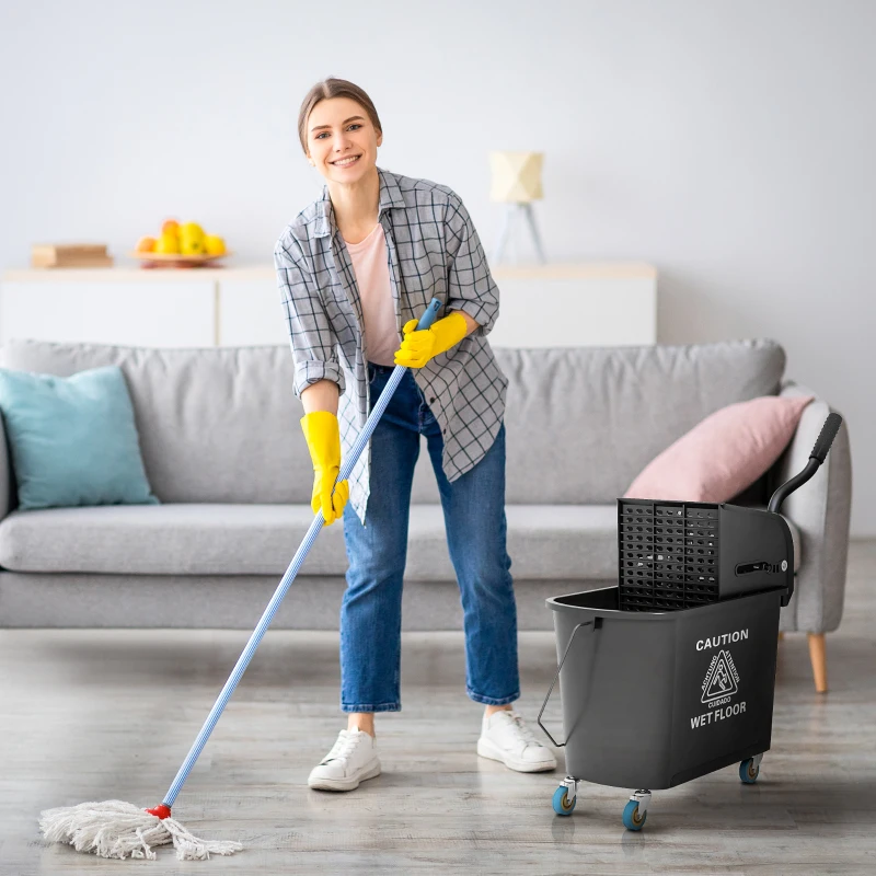HOMCOM Compact Mop Bucket with Wringer, Mop Bucket on Wheels, 5 Gallon, Separate Dirty and Clean Water, Black
