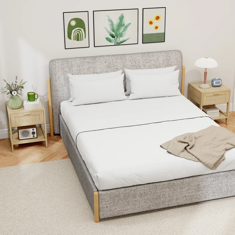 • Store What You Need: This bedside table with a drawer and open shelf keeps your essentials organized—glass of water on top, books on the shelf, and personal items tucked away in the drawer, all within easy reach.